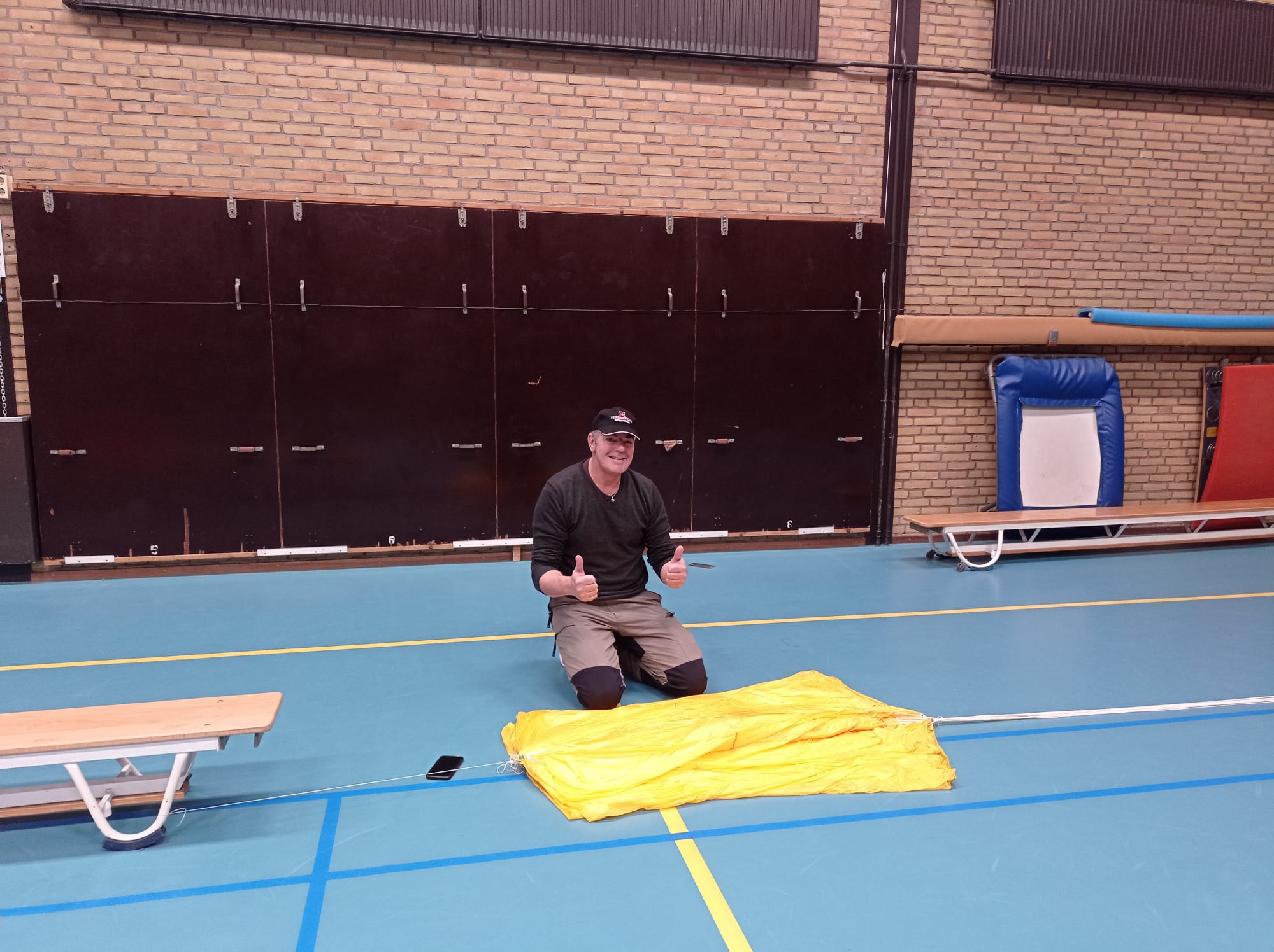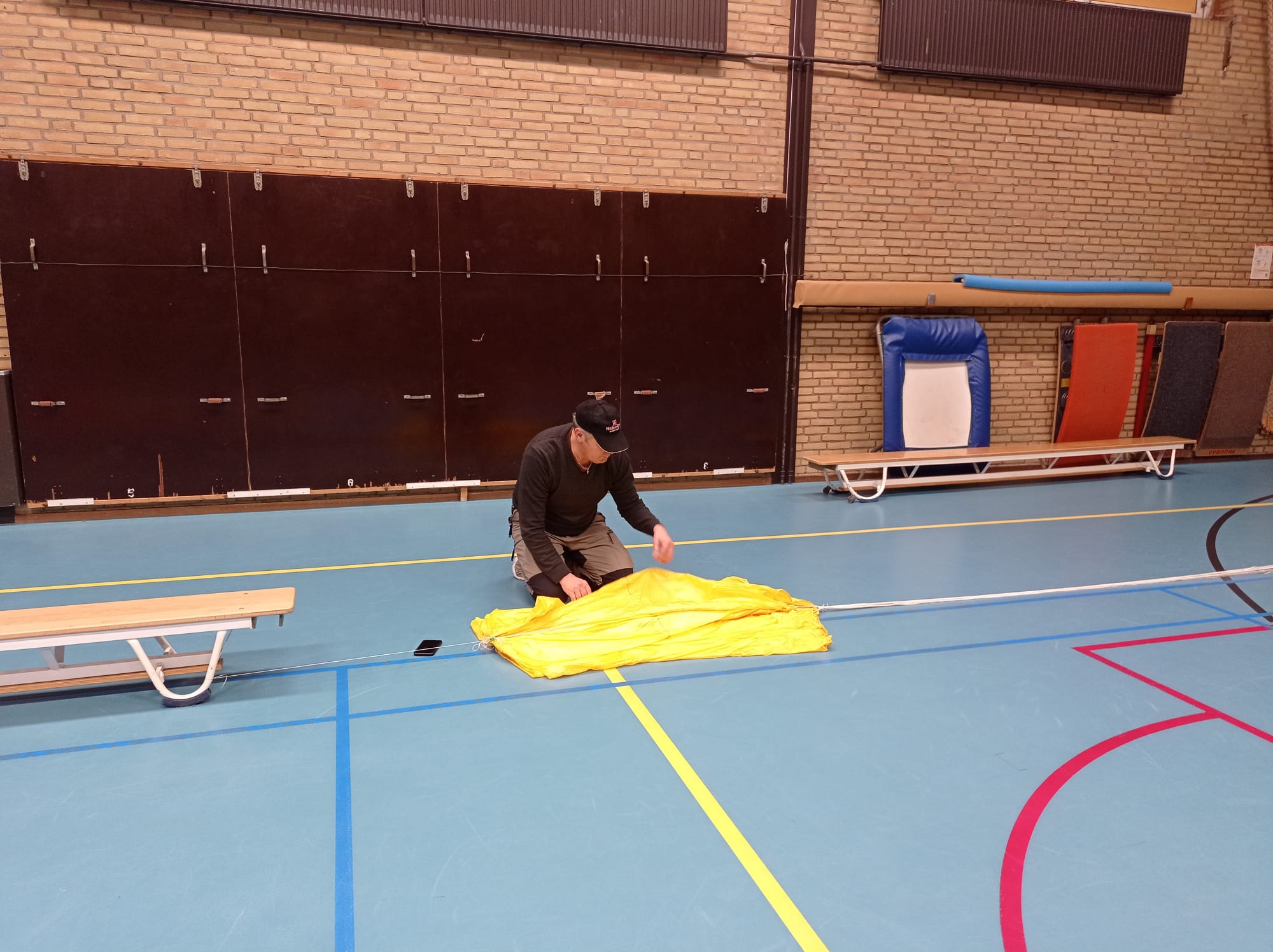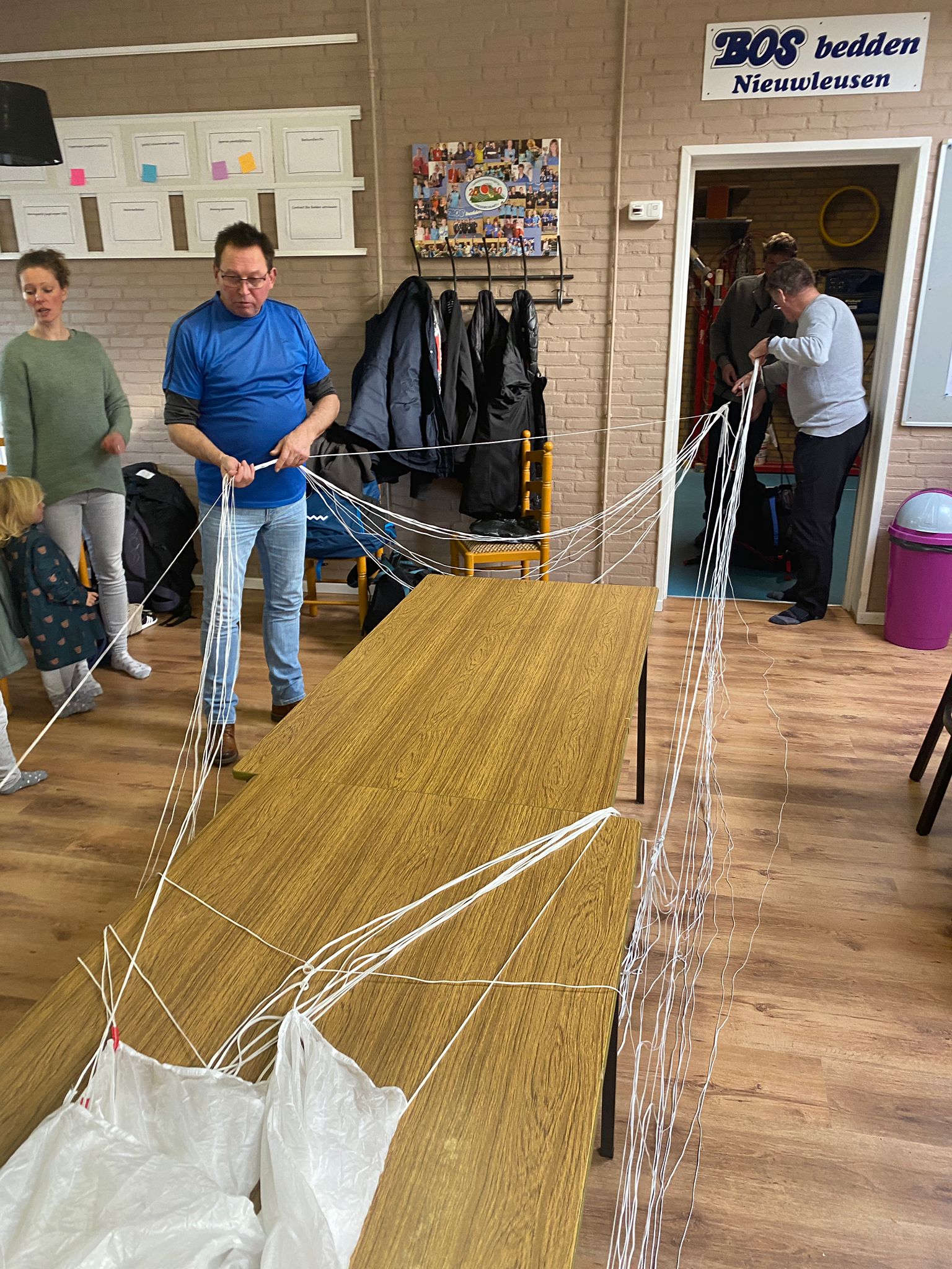 Begin van het seizoen, noodshute vouwen! Ron geeft uitleg hoe de lierkabel te lassen.